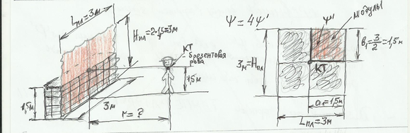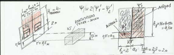 L1= L /2 = 4 : 2 = 2 м и H1 = Н пл + 0,5 = 4,5 м,