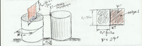 L= D /2 = 6 : 2 = 3 м и H = Н пл = 3,6 м, из которых