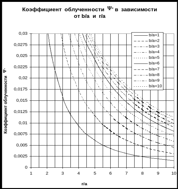 b/ a = 10 / 3 = 3,333, r/ a = 10/3 =3,333, по которым находят условные ЧАСТНЫЕ коэффициенты облученности для прямоугольника ’.