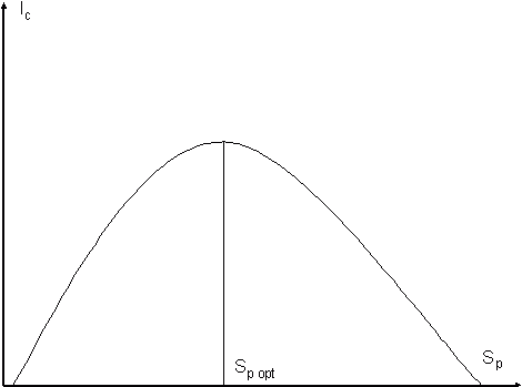 В зависимости от соотношений между смысловым содержанием информации ^ S и тезаурусом пользователя Sp изменяется количество семантической информации Ic, воспринимаемой пользователем и включаемой им в дальнейшем в свой тезаурус. Характер такой зависимости показан на рис. 3. Рассмотрим два крайних случая, когда количество семантической информации Ic равно 0: