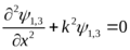 Ψ1(x)=A1eikx+B1e-ikx(для области 1);Ψ2(x)=A2eiqx+B2e-iqx(для области2) Ψ3(x)=A3eikx+B3e-ikx(для области 3).