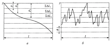 Важной характеристикой, применяемой при расчете контактного взаимодействия, является опорная кривая профиля рабочей поверхности, которая характеризует распределение материала по высоте шероховатого слоя (рис. 4а). Для ее построения профилограмму разбивают на ряд горизонтальных уровней шириной а, параллельных средней линии (рис. 4б). Затем суммируют участки, ограничивающие ширину выступов Δli, т.е. определяют величину ΣΔl на каждом из уровней р. Обычно опорную кривую строят в относительных величинах, т.е. по оси абсцисс откладывают значения относительной опорной кривой на уровне р, а по оси ординат — отношение сближения а и Rmax: