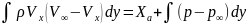 С другой стороны изменение импульса равно сумме внешних сил: Xa, касательное напряжение трения τ и результирующую силу от разности давлений в сечениях 1-1 и 2-2