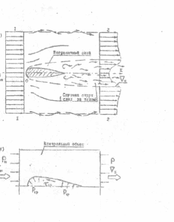 Невозмущенный поток вдоль линии 1-1 характеризуется скоростью V∞, статическим давлением p∞, давлением торможения p0.