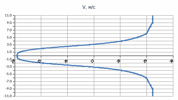 Таблица расчета профиля скорости в возмущенной области