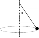 43. Малый шарик, подвешенный на нити, движется по окружности в горизонтальной плоскости (см. рисунок). Найти отношение моментов инерции шарика относительно оси, проходящей через центр круговой траектории и точку подвеса, при углах отклонения нити α1 = 60° и