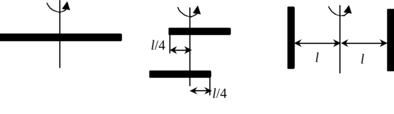 63. Вычислить момент инерции каждой из фигур относительно осей, показанных на рисунке. Каждая фигура состоит из двух тонких стержней длиной l и массой m каждый.