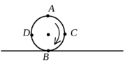 61. Колесо радиусом R катится по горизонтальной поверхности со скоростью V0 без скольжения (см. рисунок). Найти скорость движения точек A, B, C и D и угловую скорость вращения колеса относительно земли.