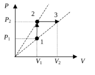 12. Сравнить изменения температуры газа в процессах 1→2 и 2→3, показанных на рисунке, если отношение Р2/ Р1 = 2, V2/ V1 = 2.