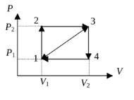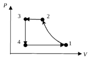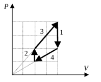 4. Сравнить КПД циклов 123 и 134, изображенных на рисунке. Отношение Р2/ Р1 = 2, V2/ V1 = 3.
