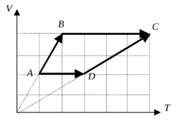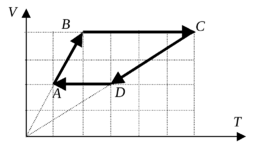 55. Идеальный газ с показателем адиабаты γ совершает цикл, состоящий из двух изохор и двух изобар. Найти КПД такого цикла, если температура газа T возрастает в n раз как при изохорическом нагреве, так и при изобарическом расширении.