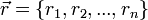 . Здесь r1,r2,...,rn — координаты радиус-вектора. Геометрически изображается вектором, проведенным из начала координат к материальной точке. Зависимость радиус-вектора (или его координат ri = ri(t)) от времени