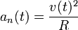 — единичный вектор касательной. Величина an называется нормальным ускорением и характеризует скорость изменения направления движения. Нормальное ускорение выражается через мгновенную скорость и радиус кривизны траектории: