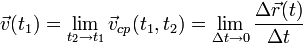 Мгновенная скорость — векторная физическая величина, равная первой производной от радиус-вектора по времени: