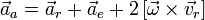 Абсолютное ускорение равно сумме относительного, переносного и кориолисова: