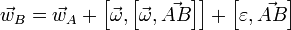 Связь ускорений двух точек можно получить, продифференцировав формулу Эйлера для скоростей по времени:
