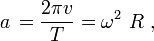 Ускорение, вызванное изменением направления скорости, можно найти, если заметить, что скорость совершает полное изменение направление за то же самое время T, за которое объект делает один оборот. Тогда вектор скорости проходит путь длиной 2π v каждые T секунд, или:
