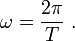 Для движения по кругу радиуса R длина окружности будет C = 2π R. Если период вращения есть T, то угловая скорость вращения ω будет равна: