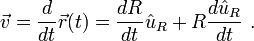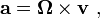 и есть вектор, перпендикулярный как Ω так и r ( t ), направленный по касательной к орбите и имеющий величину ω R. Аналогично, ускорение определяется как: