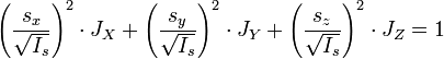 откуда получается уравнение эллипсоида в собственных координатах. Разделив обе части уравнения на