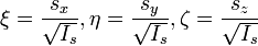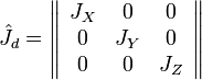 — ортогональная матрица перехода в собственный базис тензора инерции. В собственном базисе координатные оси направлены вдоль главных осей тензора инерции, а также совпадают с главными полуосями эллипсоида тензора инерции. Величины