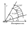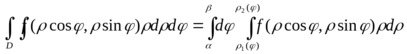 . Если область интегрирования D ограничена двумя лучами φ = α и φ = β, выходящими из полюса, и двумя кривыми, заданными функциями ρ = ρ1(φ) и ρ =ρ2(φ), то двойной интеграл вычисляется по формуле (полюс совмещен с О, полярная ось с Ох):