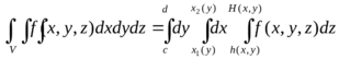 Вычисление тройного интеграла сводится к последовательному вычислению трех определенных интегралов от внутреннего к внешнему, у которого пределы интегрирования всегда должны быть постоянными (const).