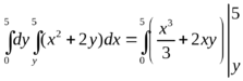 Поменяем порядок интегрирования: во внешнем интеграле по у, во внутреннем – по х. Тогда 0 ≤ у ≤ 5, а у ≤ х ≤ 5.