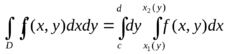 Если область интегрирования D ограничена снизу прямой y = c, сверху прямой y = d, слева непрерывной функцией x = x1(х), справа непрерывной функцией x = x2(х), то