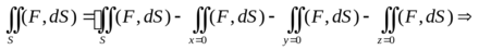 заметим, что через поверхности S: z = 0 (dz = 0), x = 0 (dx = 0), y = 0 (dy = 0)