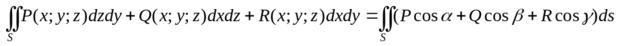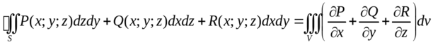 связь поверхностного интеграла по замкнутой поверхности с тройныминтегралом по объему внутри этой поверхности (формула Остроградского-Гаусса);