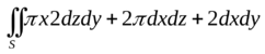 вычисляем по проекциям на координатные плоскости, учитывая знаки направляющих косинусов нормали к поверхности и из уравнения поверхности выражая необходимые переменные в подынтегральных выражениях