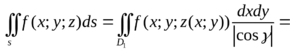 Поверхностный интеграл может быть вычислен по любой из следующих формул: