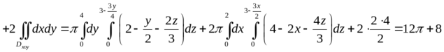 > 0, поэтому переходя к вычислению двойных интегралов, выбираем знаки “+” и из уравнения поверхности выражаем соответствующие переменные.