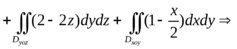 Расставляем пределы интегрирования по прямоугольным проекциям на соответствующие плоскости и вычисляем двойные интегралы: