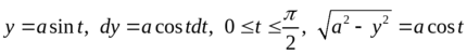 Определенный интеграл вычисляем с помощью тригонометрической подстановки: