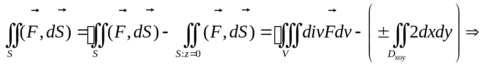через поверхности: у = 0 (dy = 0) и х = 0 (dx = 0) равны нулю и лишь поток через поверхность z = 0 (dz = 0) не равен нулю: П =