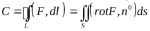 связь криволинейного интеграла по замкнутому контуру с поверхностным интегралом по поверхности, натянутой на этот контур (формула Стокса);