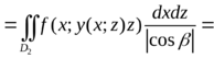 переходим к вычислению двойного интеграла, выразив х из уравнения поверхности: =