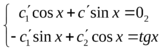 Функции с1(х) и с2(х) найдем, решая систему линейных алгебраических уравнений, содержащую два уравнения и два неизвестных: