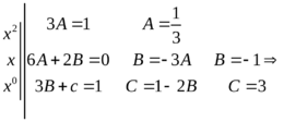 Для вычисления коэффициентов из полученного тождества используем утверждение “многочлены равны, если равны коэффициенты при переменных в одинаковых степенях и равны свободные члены”: