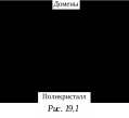 В пределах своих границ каждый домен намагничен однородно и до насыщения. В любом кристаллике поликристаллического ферромагнитного образца (рис. 19.1) магнитные моменты соседних доменов ориентируется по одной из «осей легкого намагничивания» кристаллика во взаимно противоположных направлениях.