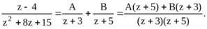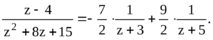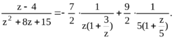 Решение. Корнями уравнения z2+8z+15=0 являются числа z1=-3 и z2=-5. Разложим эту
