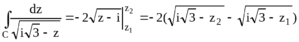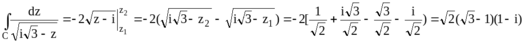 Решение. Точки z1 и z2 не являются особыми точками для подинтегральной функции. Следовательно, можно применить формулу Ньютона-Лейбница: