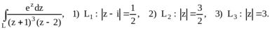 Решение. 10.. .Найдём корни знаменателя: z1=1, z2=-i, z3=i. Значениz z2=-i и z3=i являются простыми полюсами подынтегральной функции, а значение z1=1 - полюсом кратности 3. Тогда
