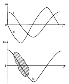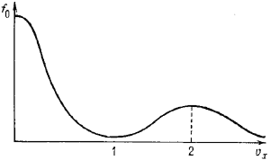Наиболее простой тип кинетической неустойчивости плазмы развивается при взаимодействии с плазмой пучков заряженных частиц. Этот подкласс кинетической неустойчивости плазмы получил название пучковых. Проще всего интерпретировать пучковую неустойчивость как обращение эффекта затухания Ландау. При наличии в плазме достаточно интенсивного пучка электронов функция распределения по скоростям f0 имеет второй максимум при скорости, соответствующей средней скорости частиц пучка v0 (точка 2 на рис. 1). В этом случае всегда существует интервал скоростей резонансных частиц между точками 1 и 2 на рис. 1, в котором производная . Волны, фазовые скорости которых лежат в этом интервале, будут поглощать энергию пучка, а их амплитуды нарастать со временем. Таким образом, из широкого спектра плазменных колебаний, возникающих вследствие тепловых флуктуации, выделяется узкий спектральный интервал волн, находящихся в резонансе с пучком и поглощающих его энергию. Развитие пучковой неустойчивости плазмы сопровождается разбиением электронного пучка на сгустки и группировкой его частиц в области тормозящих фаз электрического поля неустойчивой плазменной волны. Рассмотрим плазменную волну, распространяющуюся в направлении движения пучка и имеющую фазовую скорость vф, близкую к его ср. скорости v0. В системе отсчёта волны электрическое поле, действующее на пучок, квазистационарно и энергия электронов ( - электростатический потенциал в волне) должна сохраняться. Поэтому изменение скорости ( ) электронов . Если волна движется несколько медленнее пучка (v0 > vф), то группировка частиц должна иметь место в той области фаз, где , т.е. сила электрического поля волны, действующая на электроны пучка , является тормозящей (рис. 2). Электроны, группируясь в области тормозящих фаз поля, отдают энергию волне и тем самым ещё больше усиливают модулирующую их плазменную волну. Развивается пучковая неустойчивость плазмы - экспоненциально быстрое нарастание плазменных колебаний с теплового уровня, сопровождающееся модуляцией пучка.