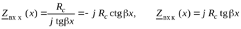 Легко видеть, что входные сопротивления в этих предельных режимах являются чисто реактивными, причем на протяжении первой четверти длины волны Zвх х носит емкостный, а Zвх к – индуктивный характер.
