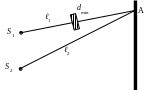 Решение. Пусть до внесения пластины в некоторой точке А на экране наблюдался максимум интерференции (светлая полоса). При этом разность хода лучей от источников (см. рисунок).