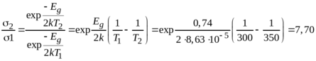 Пример. Во сколько раз возрастет электропроводность германиевого образца при нагревании его от Т1 = 300 К до Т2 = 350 К?