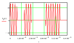 Фрагмент сигнала, отвечающий первым двум буквам сообщения на выходе модулятора.
